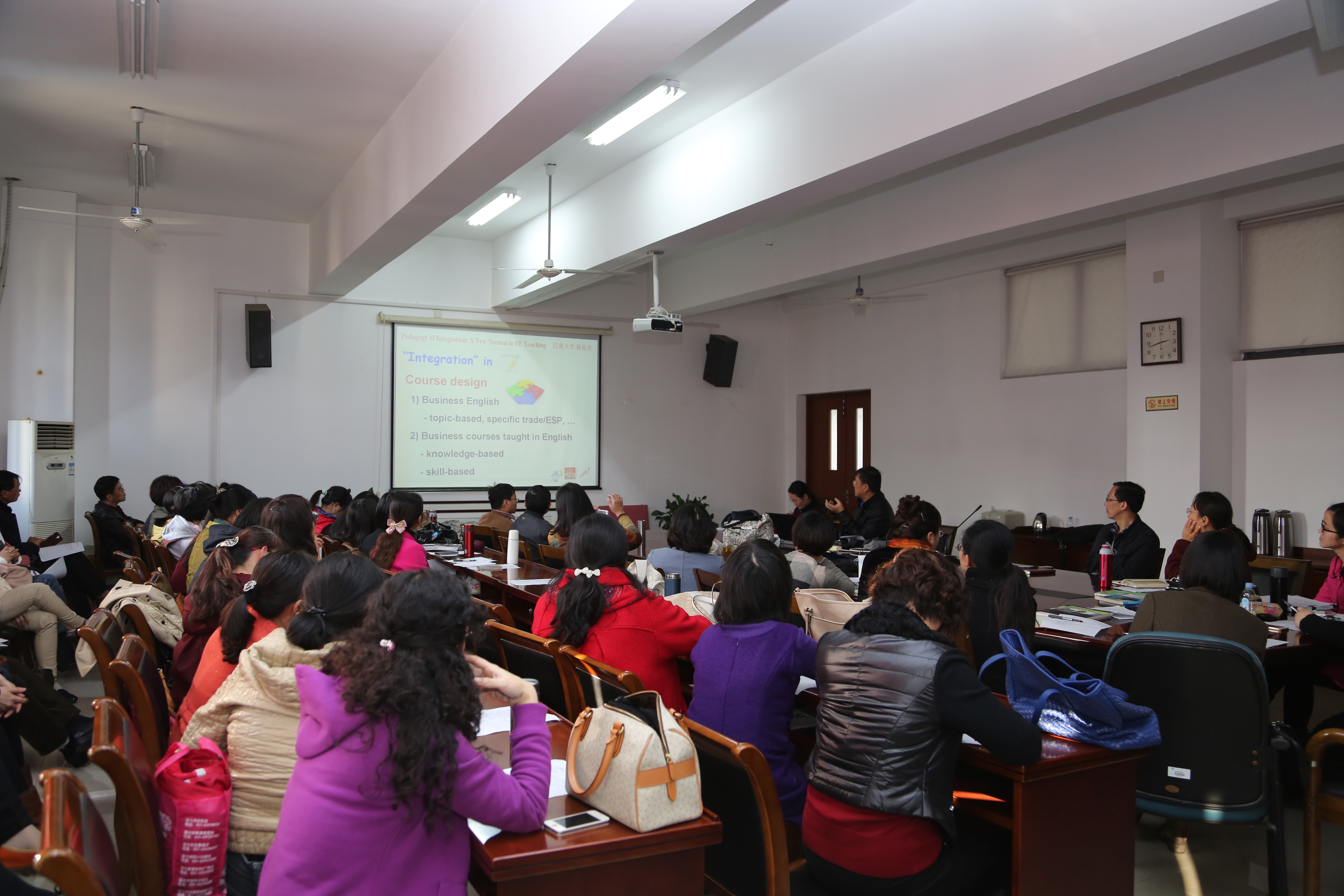 杨祖宪副教授多年来一直奋战在商务英语系列课程教学第一线,积累了丰富的教学经验。讲座中,他将自己在集成创新教学方面的经验毫无保留地介绍给广大教师。讲座不仅对即将进入商务英语课程模块的教师有积极的指导作用,也为其他教师的教学打开了思路。教师们纷纷表示欢迎这样实用且高效的教研活动。