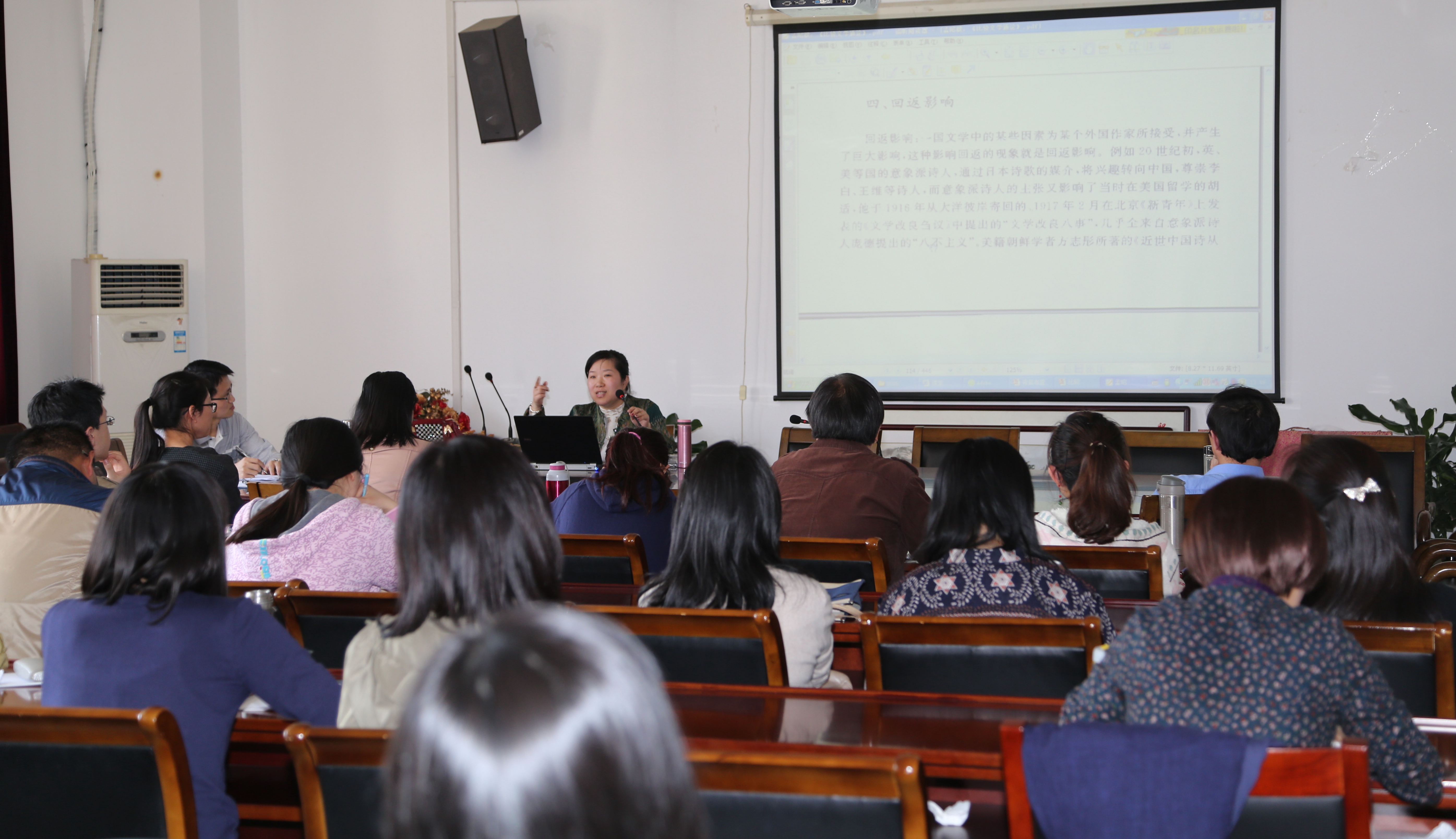 在朱义华博士简要介绍后,博士沙龙正式开讲。张俊萍老师做了题为“比较文学影响研究的历史、方法和问题”的主题讲座。张老师对比较文学研究的定义与基本类型、比较文学影响研究的类型、方法与操作步骤、比较文学研究的历史与问题进行了详细的介绍与深入的解读。张老师的讲解条理清晰、旁征博引、深入浅出,“很有意思”,受到了参与者的一致好评。在张老师和部分在座师生深入互动后,方文开教授以极为谦虚的语气与幽默的言辞对张老师的讲解与该场沙龙进行了精彩点评,他认为像张老师一样,能将兴趣爱好与学术探索有机结合才是最佳的学术研究途径,而轻松自由的沙龙交流也是触发思想火花的理想场所。本次学术沙龙最后在老师们热烈的掌声中落下了帷幕。