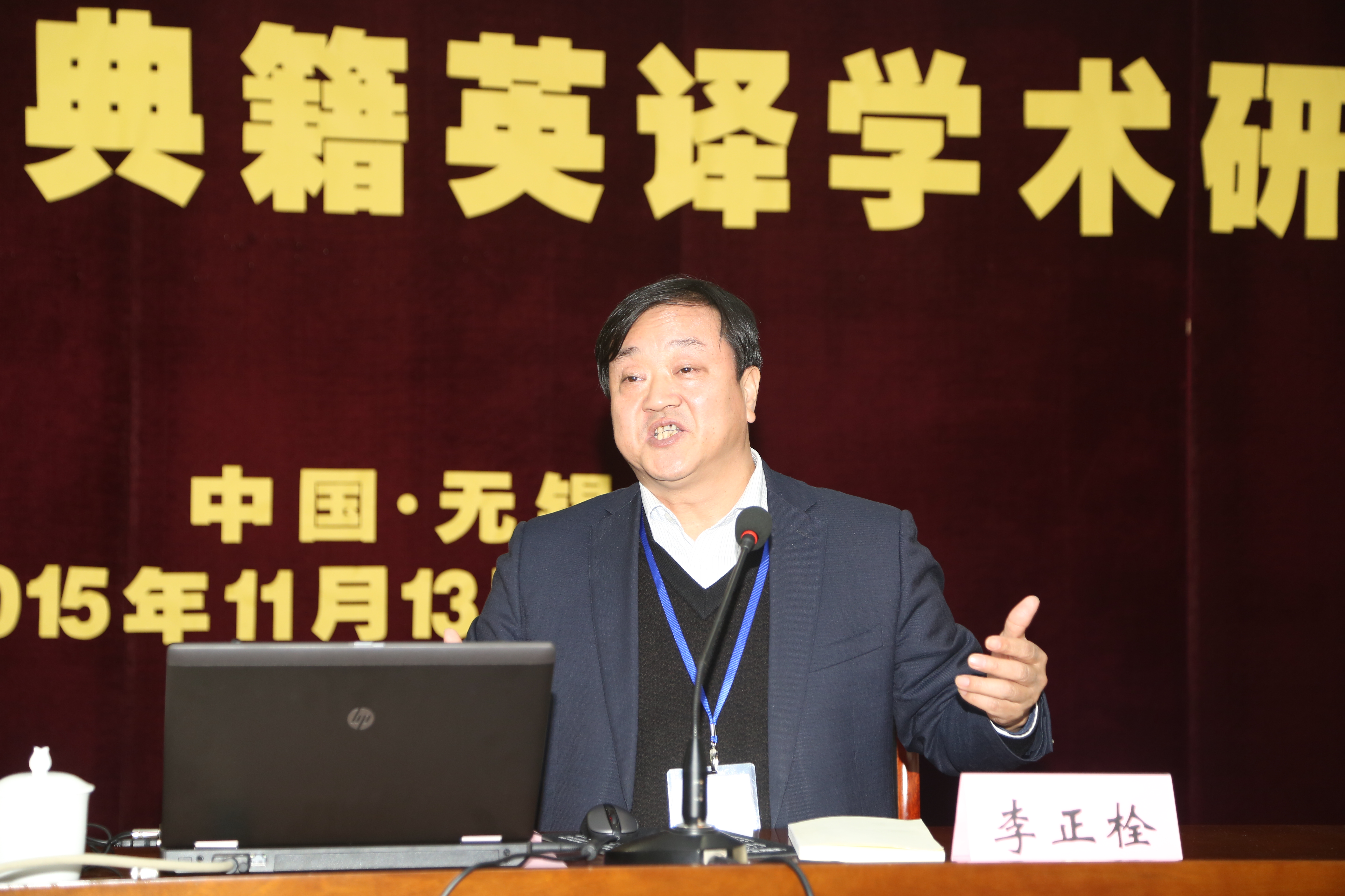 校长,现苏州大学、大连理工大学博士生导师汪榕培教授发表了大会致辞。他简要回顾了典籍英译委员会的发展历程、指出了典籍翻译的国家战略意义,并提出了对大会与典籍翻译界后辈的期待。汪教授虽年逾古稀,但在脱稿发言时思路清晰、铿锵有力,让在座的与会代表们无不钦佩。最后,中国英汉语比较研究会典籍英译专业委员会会长、南开大学博士生导师王宏印教授致辞并宣布大会正式开幕。他在致辞中首先充分肯定了水果派