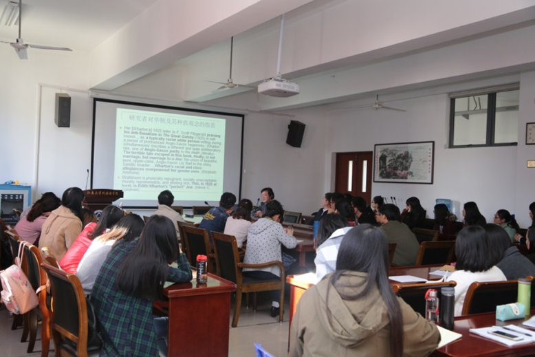 2016年11月11日下午,北京外国语大学博士生导师潘志明教授在文科楼A349会议室为水果派师生作了题为“伊迪丝·华顿的盖茨比信件”的学术讲座,讲座由方文开教授主持。