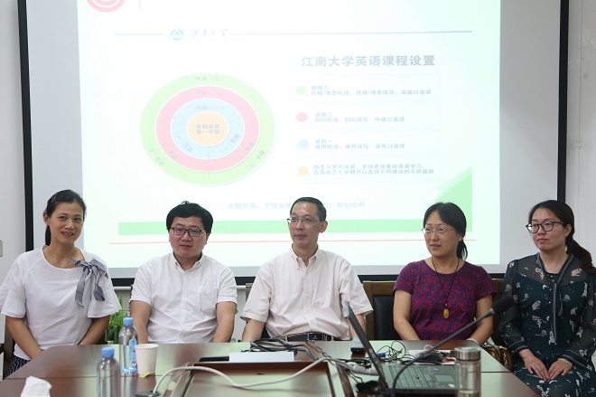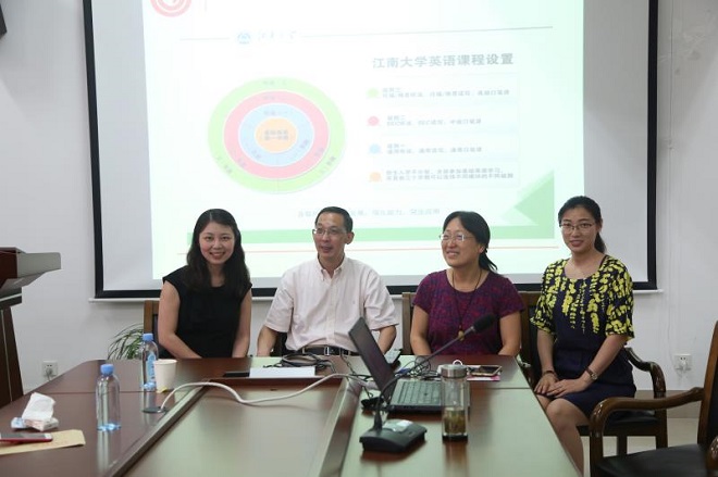 ,调研学习大学外语等课程设置、改革以及人才培养方案方面的经验。院长龚晓斌作了题为《大外改革:各取所需,个性发展》的报告。施惠平副院长、拓展部谢竞贤主任出席交流会。