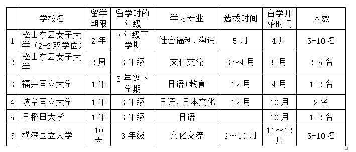 日语专业年度交流项目汇总
