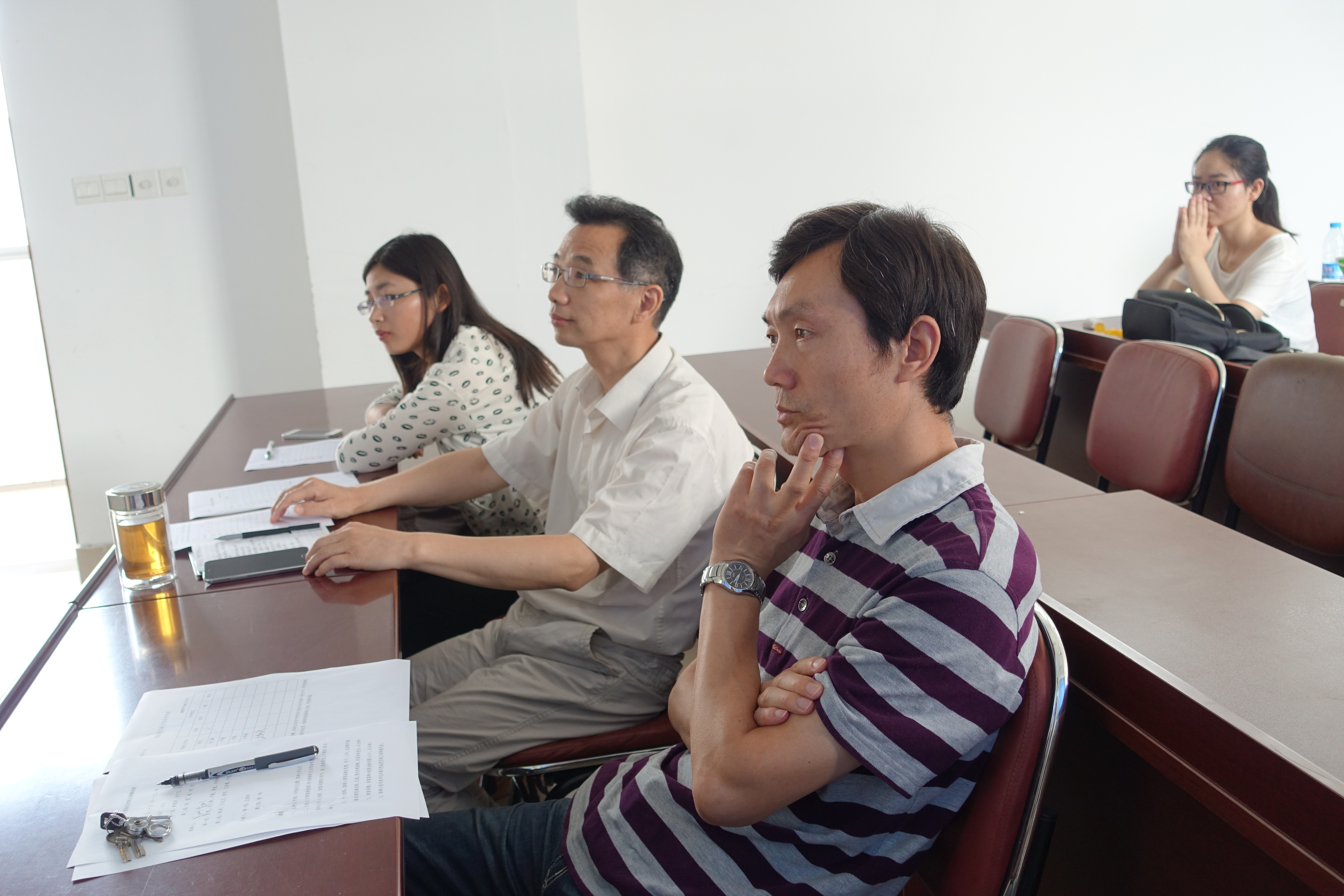 预备党员转正答辩会顺利召开。院党委书记黄城芳、院党委副书记赵莹、党委人事秘书许广玉、分团委书记陈昀、教学秘书刘虹、辅导员王琰玲及学生党支部书记汤婷、黄倩倩组成两个答辩考评小组,分别对12位拟转正的预备党员进行答辩考核。