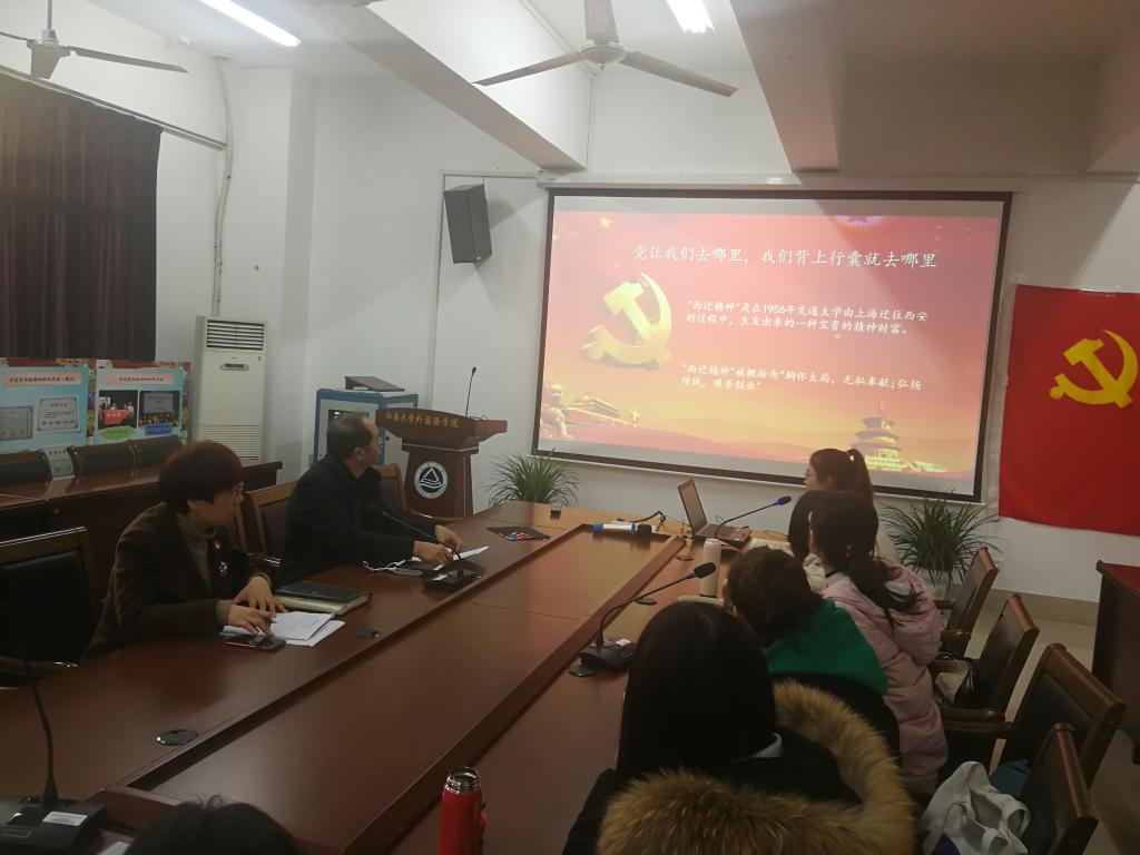 首先支部书记带领大家集中观看了《西迁精神》的视频。“西迁精神”是在1956年交通大学由上海迁往西安的过程中,生发出来的一种宝贵的精神财富。“西迁精神”被概括为“胸怀大局,无私奉献;弘扬传统,艰苦创业”。她指出新时代新征程,党员同志要传承好西迁精神,为西部发展,国家建设奉献智慧和力量。接着支部书记分享了荣毅仁先生与水果派