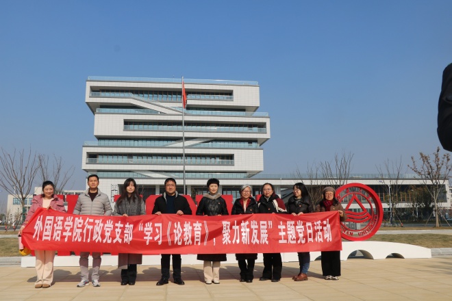 霞客湾校区参观学习。江阴校区管理办公室副主任刘虹为党员们介绍了校区的建设情况、学校入驻情况、功能布局和建设愿景等。党员们深入图书馆、教学楼、食堂等参观了解各类教学、服务设施运行情况,并与正在江阴上课的大外部老师们进行了交流慰问。
