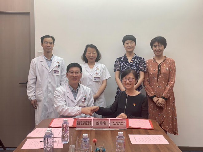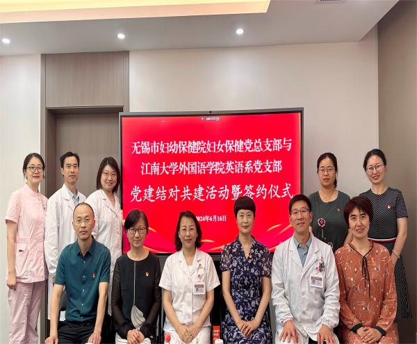 党委书记李荣华、副院长顾琦一、英语系系主任杨勇带领英语系党支部委员会代表和江南外语教学研究中心骨干成员,赴无锡市妇幼保健院,开展党组织共建工作,见证英语系支部和妇幼保健院妇女保健党总支的结对共建协议签署。李荣华一行受到了妇幼保健院党委副书记熊志玲、党办负责人吴蕾、妇科主任暨妇女保健党总支部书记赵绍杰、麻醉科副主任朱爱兵等的热情接待。