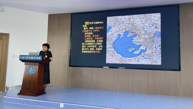 讲座由全国优秀人文科普专家、国家一级编剧庄若江教授主讲,主题为《吴,罕为人知的城市前世》。讲座从甲骨文“吴”字解析入手,对早期勾吴古国历史发展进行了梳理,以历史观点溯源论证了泰伯奔吴、周章受封、寿梦初霸、季子不居、专诸刺僚、阖闾称霸、夫差亡国等历史事件,用一个个历史故事串成早期勾吴古国的发展进程。讲座还对无锡城市文化品牌“太湖绝佳处,运河水弄堂。千年古吴都,百年工商城”进行了详细阐述,通过时间主线和历史事件,展示了无锡的历史长卷。在庄教授娓娓道来的婉转叙述中,老师们领略了吴文化的灿烂辉煌。