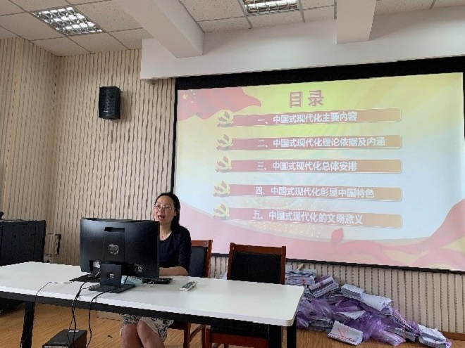 副院长谢竞贤为拓展部党支部全体党员讲授了题为《以中国式现代化全面推进中华民族伟大复兴》的主题党课。