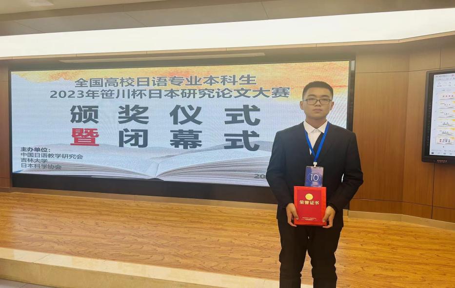 该项大赛由中国日语教学研究会、吉林大学和日本科学协会联合主办。本届大赛组委会共收到来自38所高校的140篇论文,其中语言学类30篇、文学类42篇、文化类68篇。评审委员由教育部高等学校日语专业教学指导分委员会、中国日语教学研究会相关领域专家组成,对参赛论文进行了严格的评审。经过初审,每个领域评选出10篇论文入围决赛答辩环节,决赛经过激烈的现场答辩评出最终奖项。