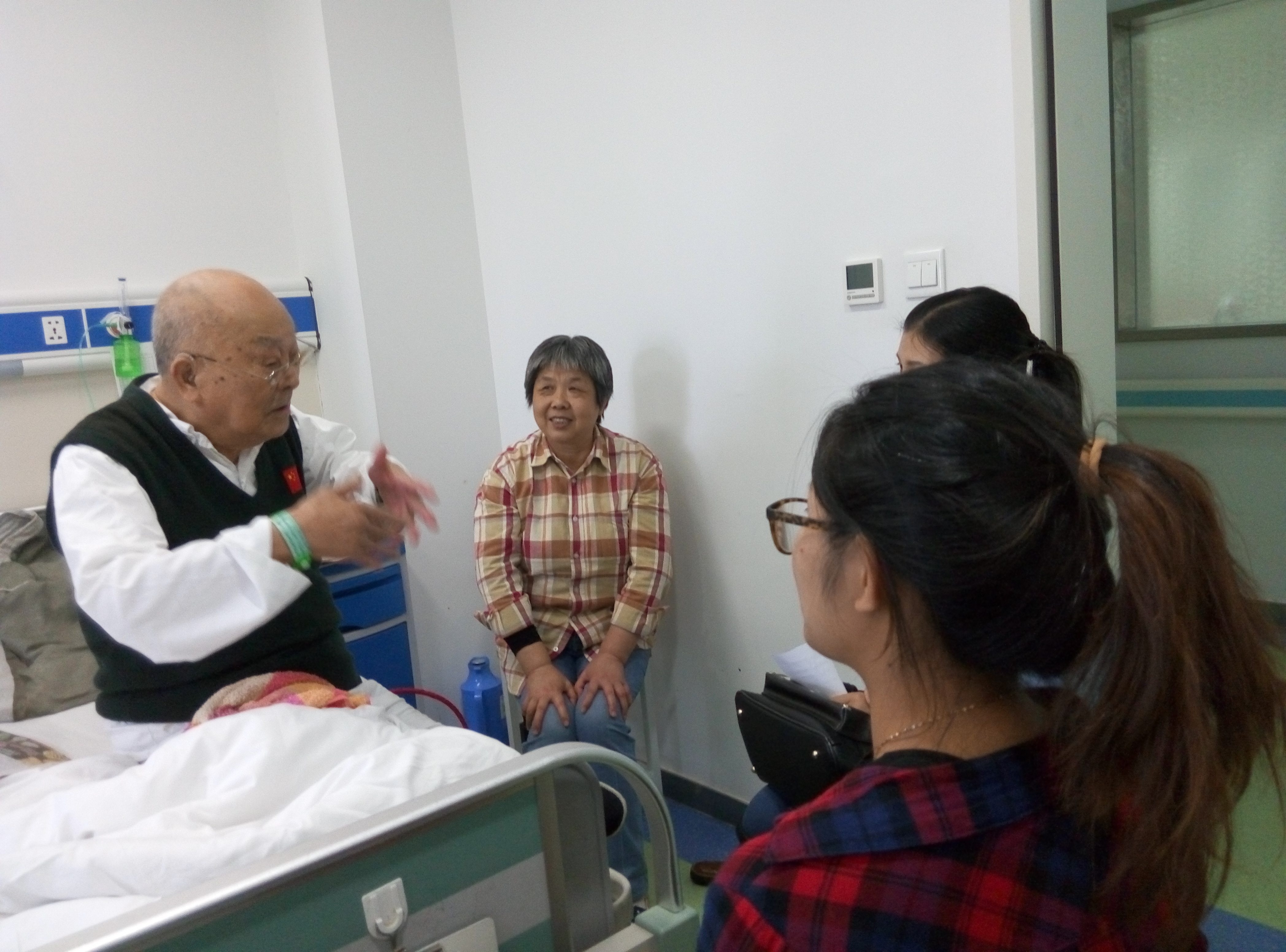 “我小学四年级毕业,没什么文化水平,现在也九十多岁干不了什么了,我们就是凭着一颗赤胆忠心,永远跟着共产党,就凭这一颗忠心而工作;但是你们不一样,你们是国家的未来,是共产党的未来,你们现在正赶上我们国家经济发展、对外开放、国内国外形势大好的环境,所以你们是国家的未来,国家的希望都在你们的身上。”老前辈虽然句句朴实,却着实震撼着在场的每个人。一颗赤胆忠心看似抽象,但老前辈用毕生实践着它,作为朝气蓬勃的大学生们,此时此刻又怎能不会进一步的体会我们肩负的重任呢?