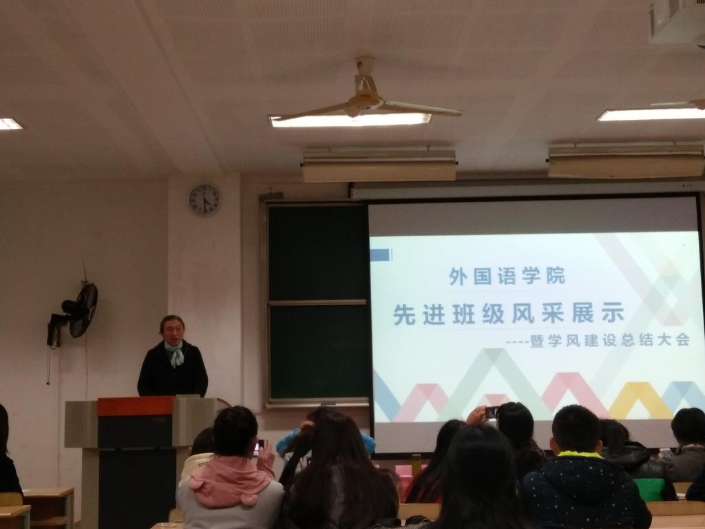 于2016年11月9日举行了 2016年度外国语先进班级风采展示大会。院党委副书记赵莹、调研员张晓虹老师、 辅导员王琰玲、刘琦老师等学院老师及全院主要学生干部参加了此次大会。
