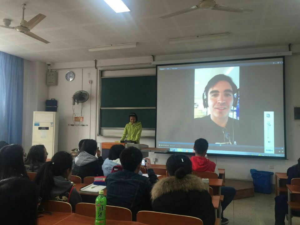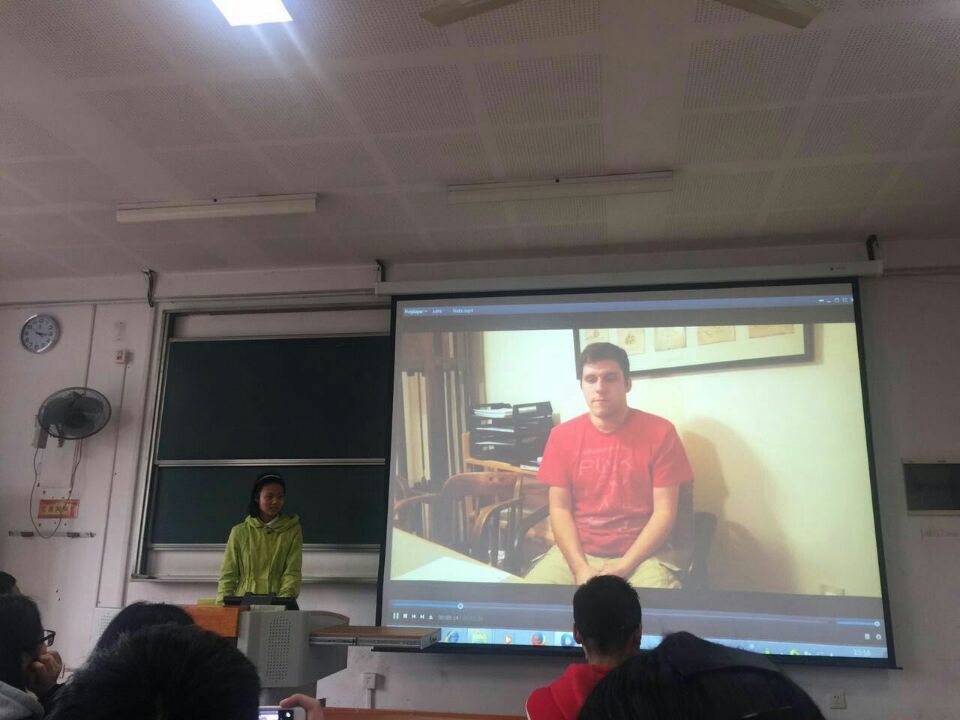 同学们与外国友人视频谈论心理问题