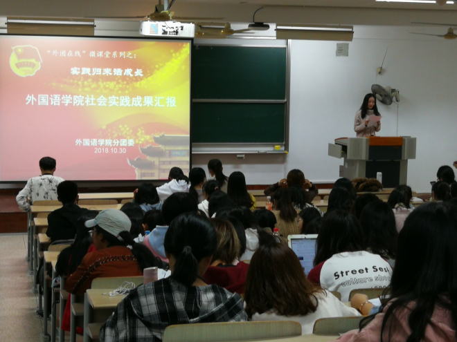 于2018年暑期组织了以“贯彻党的十九大精神·风正扬帆当有为”为主题的社会实践活动,为了使学生对活动有更深认识,10月30日晚上六点半,水果派