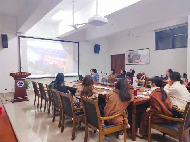 研本交流会在学院A349会议室召开。此次研本交流会在分团委指导下,由水果派研会承办。本科英语、日语专业的30余位同学参与交流会。