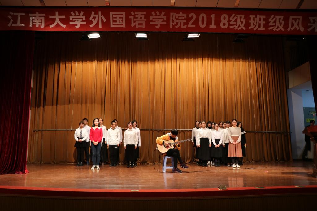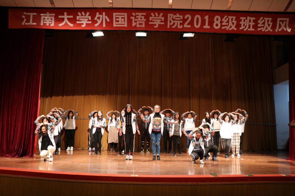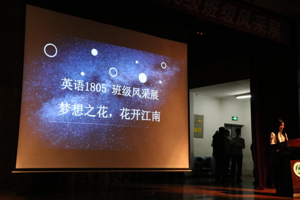活动共分为班级文化展示和班级才艺展示两个环节。第一个环节,由8个班级代表分别介绍各自的班级文化,如班徽、班训、班级成员精神风貌等。日语1801班的展示主题是《我们不一样》,用别具一格的方式展示了其班级独特的文化建设;英语1801班主题展示为《This us》,其班徽寓意embrace和enjoy,象征着对班集体对大学生活的向往;英语1806班的主题展示为《逐梦》,奇思妙想地展示了其班级对梦想的追逐;英语1805班的主题是《梦想之花,花开江南》,寓意在水果派
