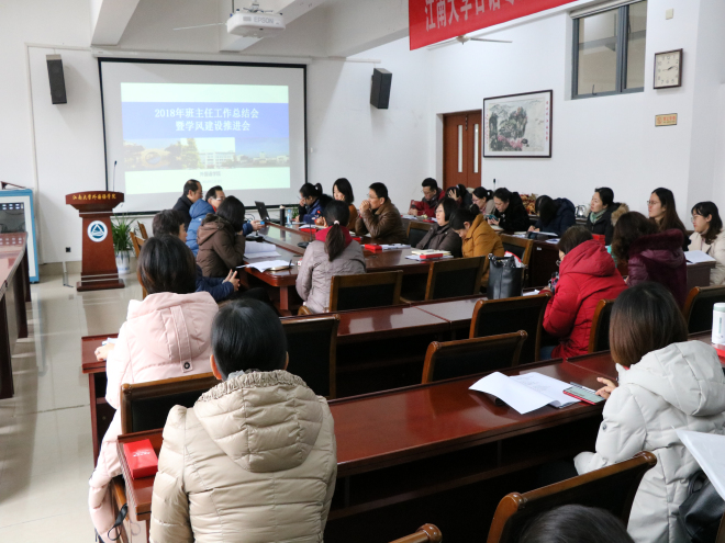 随后杨艳就2018年学院学生工作进行总结汇报。她从班级建设、学风建设、团支部建设等方面回顾了2018年的工作,具体解读了水果派新制定颁布的班主任奖励办法,公布了2017-2018学年班主任奖励提名名单,并邀请获奖班主任进行经验交流分享。