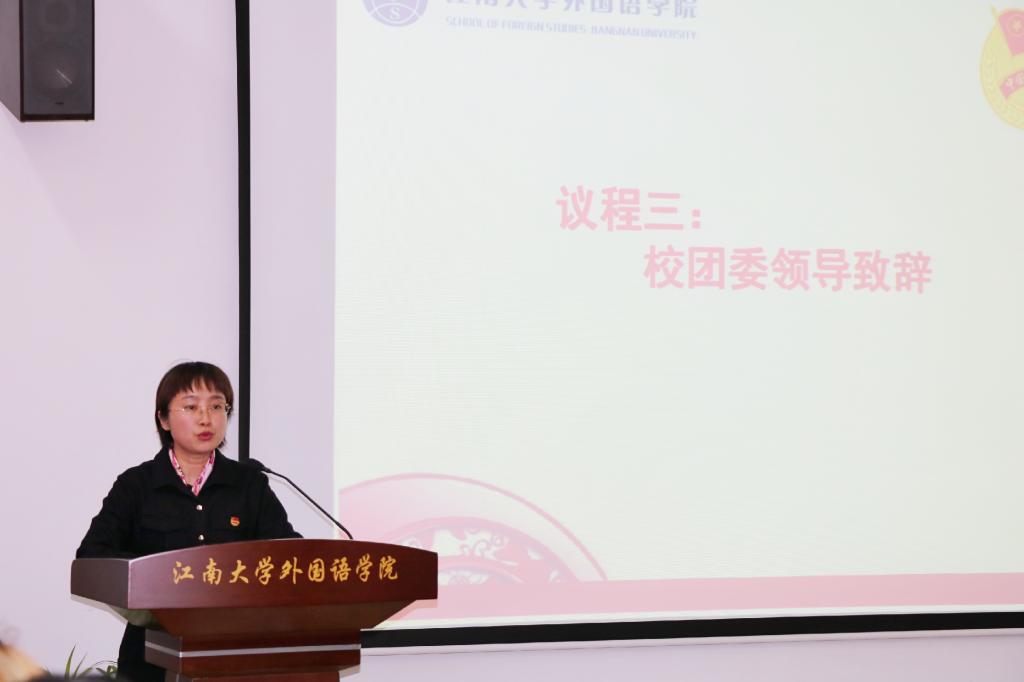 随后,校团委副书记单云婷老师致辞。首先单书记对入围青马训练营的同学表示热烈的祝贺,她提出要保持团组织的先进性,用习近平新时代中国特色社会主义思想的理论武装自身,武装全团;更重要的是,要紧跟党的领导,坚定习近平新时代中国特色社会主义思想,保持思想与党中央高度一致。她嘱托在座青马训练营营员能够在本次青马训练营中体会马克思主义的伟大意义,坚定理想信念,学习理论知识,并以青马为起点,“学有所得,学有所成”。