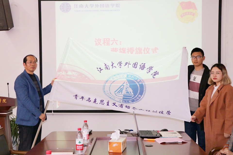 杨艳老师对“青马工程”培训方案做了简要介绍,为大家讲解计划安排,并公布了学员分组情况及任命名单。营旗授旗仪式结束后,学员代表白竞怡发言,她代表全体学员宣誓,争取成为知识有所进步、能力有所提高、思想上成熟的青年马克思主义者。