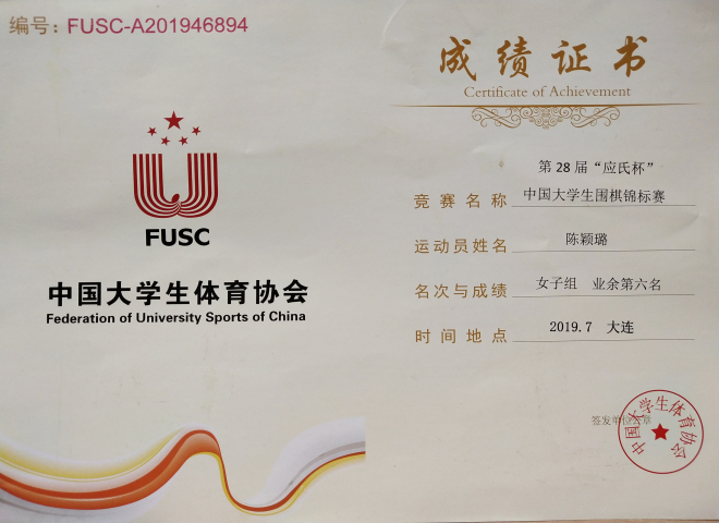 本次竞赛中,取得前12名的棋手几乎都是来自G类(高水平类)高校,她们都是通过围棋单项招生进入大学,并继续在大学里训练围棋的同学;陈颖璐同学作为一名普通类院校的棋手,在正常完成学习学业的同时,能在这次比赛中取得第六名的好成绩十分可贵。同时,陈颖璐同学是围棋项目的国家一级运动员,往年曾取得过多次江苏省锦标赛女子冠军,一次全国女子季军的骄人成绩。在今年的4月份,她代表无锡市参加了江苏省第一届智力运动会的围棋大学生组的比赛。这个暑假期间,陈颖璐同学还参加了全国社区暨华人华侨围棋邀请赛和一些全国公开赛,都取得了不错的成绩。