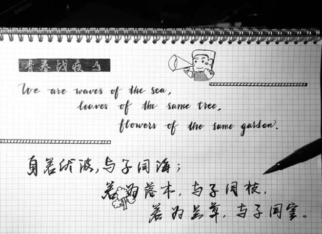 本次摄影、书画大赛以纪念五四运动,抗击疫情为主题,分为初赛和决赛,借助学院微信公众号进行线上评选。此次活动经过半个月的宣传和作品征集,共收到30余件作品。参赛的作品从不同的角度体现出疫情下的学习生活状态以及思想动态。作品中有家乡的自然风景,有体现战胜疫情的书法作品,有手绘战“疫”英雄的人物素描。这些作品展示出了大家对五四精神的理解,对战胜疫情的信心。