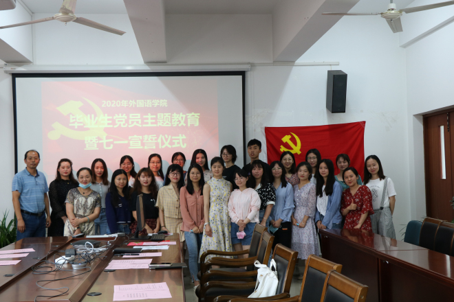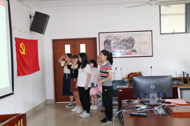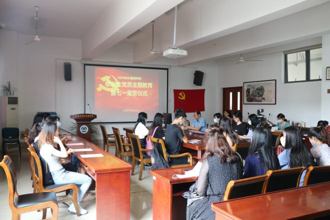 在A349会议室举行2020届毕业生党员主题教育活动暨新发展党员七一宣誓仪式。参加这次活动的有学院党委副书记刘伯贤、分团委书记杨艳、学院辅导员以及毕业生党员。仪式由杨艳主持。