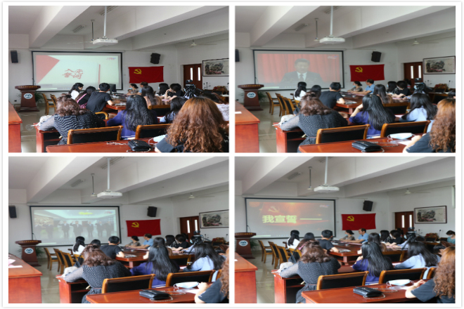 参会人员观看《我宣誓》主题微创视频