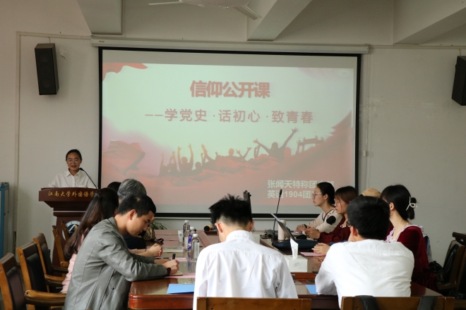 分团委书记陆芳、英语1904班主任高松怡、19级辅导员苗文建出席本次活动。17级优秀学生代表、英语1904张闻天特称团支部全体成员以及20级班团干部参加了此次公开课。信仰公开课由盖文静同学主持。