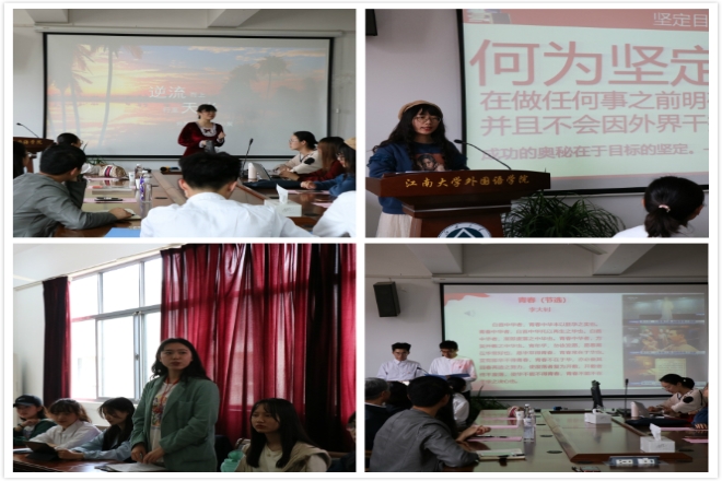 首先,英语1904团支书孟晓钰分享了《致青春》的主题团课。她将团课分为“红色篇”、“绿色篇”与“金色篇”三个部分。在“红色篇”中,她向大家讲述了邓恩铭、邓中夏、周恩来等人的革命故事,“红色篇”是希望,激情,魄力,斗志与爱国之心的体现;在“绿色篇”中,守护丹顶鹤女孩徐卓的故事令人敬佩。“金色篇”是奉献与坚守的象征,英勇的战士陈祥榕,誓死捍卫祖国疆土,他是人民的好战士,令父亲为之自豪的好儿子。主题团课结束后,在场学生就“青春与梦想”谈了自己的感想:新时代青年应当坚定理想信念,勇于创新创造,锤炼高尚品格,练就过硬本领,永远保持着艰苦奋斗的精神。