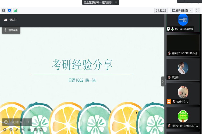 为进一步帮助水果派学生明确考研目标,更好地做好考研准备,增强考研信心,同时帮助同学们更好地了解出国(境)留学流程、做好相关准备,明确努力方向,水果派于5月5号、5月6号晚上,在腾讯会议室举行两场线上主题分享会,分享会邀请了18级国内、境外升学的7名优秀学生代表进行线上分享。
