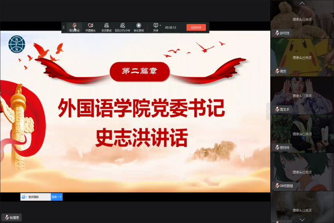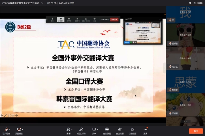 学生会主席团尹雨泽同学对2021-2022学年学生会主办的外语类活动进行了线上介绍。