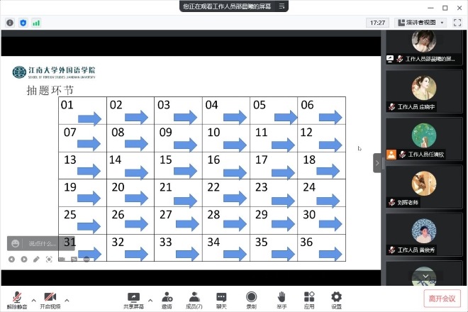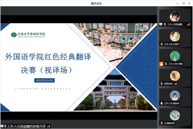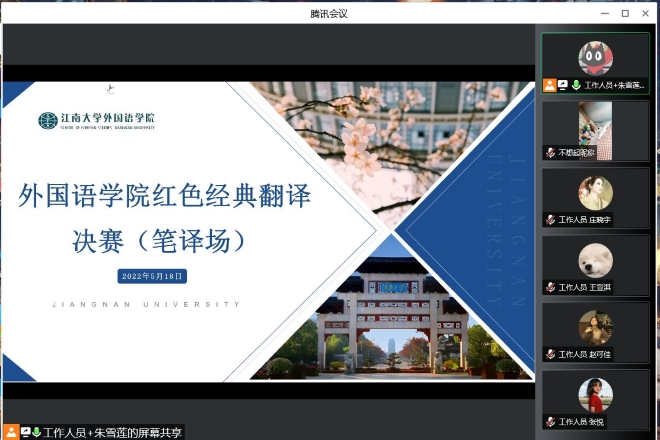 本次红色经典翻译大赛分为线上初赛和线上决赛两部分。前期经过自主报名,全校共有100余名学生报名参加。4月7日经过线上初赛后,选拔36名同学参加最终决赛。受到疫情影响,决赛改在线上进行。5月18日下午在腾讯会议室举行决赛,决赛分为笔译和视译两个环节,邀请撒忠清老师、王晓静老师、刘辉老师担任评委。本次笔译和视译的试题均从《中国共青团团史》、《中国共产主义青年团90年》、《共青团书系》、《中国共青团年鉴》、《中国共青团史稿》等红色经典著作中选取,旨在让学生重温红色经典,激励青年人用奋斗和拼搏汇聚蓬勃力量,坚定对中国特色社会主义的信念、对共产主义的信仰,同时以赛促学培养学习热情,提升翻译专业能力。