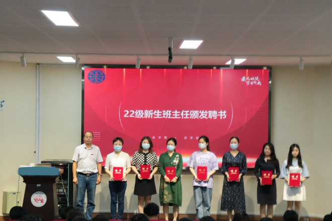 随后,学院领导宣读了22级新生班主任名单,学院党委副书记刘伯贤为2022级新生班主任颁发聘书。开学典礼现场启动了学院党员教职工联系2022级新生宿舍结对工作,学院党委书记史志洪为党员代表颁发“宿舍导师”聘书。