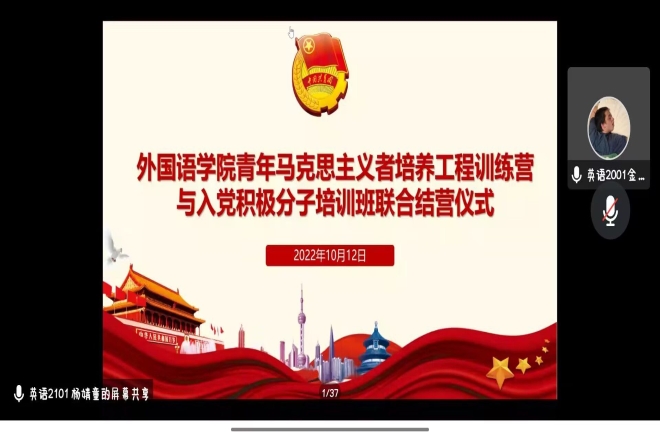 2022年度青年马克思主义者培养工程训练营暨入党积极分子培训班结营仪式通过腾讯会议顺利举行。学院党委副书记刘伯贤、分团委书记陆芳出席会议,全体营员参加了此次会议。
