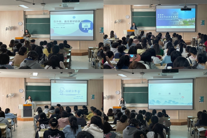 成功保研至南京大学的吴燕主要分享了自己保研的学习经历,在分享过程中,她给大家介绍了自己的学习方法;保研至中山大学的尹雨泽围绕“学涯规划、专业课学习、申请夏令营”几个方面进行介绍;获得国家奖学金的赵秋棋围绕日语专业学习以及跨专业保研经历进行分享;获得国家奖学金的高子涵和柏晶分享了自己平时的学习方法以及学科竞赛方面的经验。经验分享后,现场的同学也就自己感兴趣的问题与五位分享同学进行交流。会后同学表示感触很深,在今后的大学学习生活中要明确自己的奋斗目标,做好自己对未来的规划,从而为之不懈地努力奋斗,充实自己的大学生活。