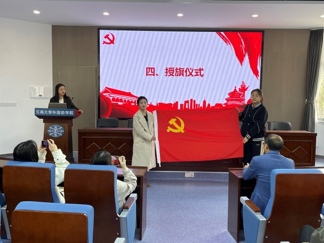 19级方漩同学作为上一期优秀学员代表发言。在分享了自己参加第44期党校培训的经历和心得之后,她表明作为积极向党组织靠拢的新青年,应牢牢抓住《共产党宣言》中的核心基本思想,不断推进自我革命,永远熟记每个人的自由发展是一切人的自由发展的条件。随后,由方漩作为代表向本期学员代表郑若琳授予党旗,全体学员起立,面向党旗郑重宣誓。开班仪式在陆芳老师布置安排本期培训班的任务和具体要求后圆满结束。
