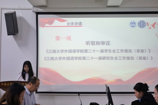 第二十一届学生会主席团成员盛晓妍和研究生会执行主席吴栖凤分别做了工作报告,她们从不同方面介绍了过去一年水果派