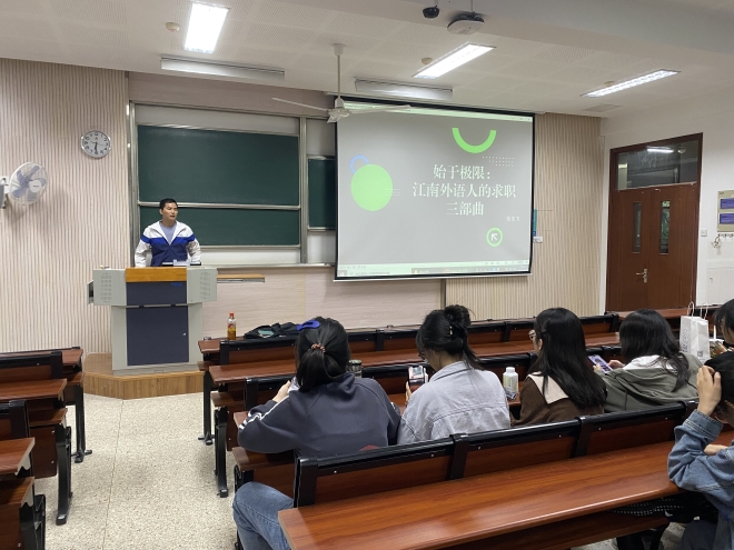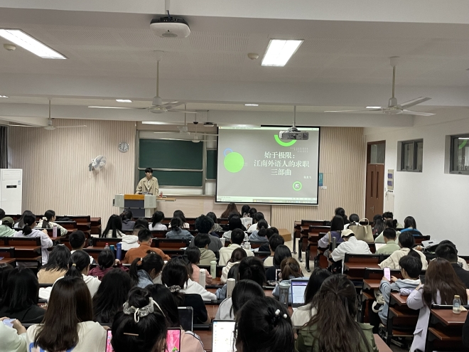 在二教2C205举办“我的求职故事”就业经验分享会,本次分享会邀请了水果派