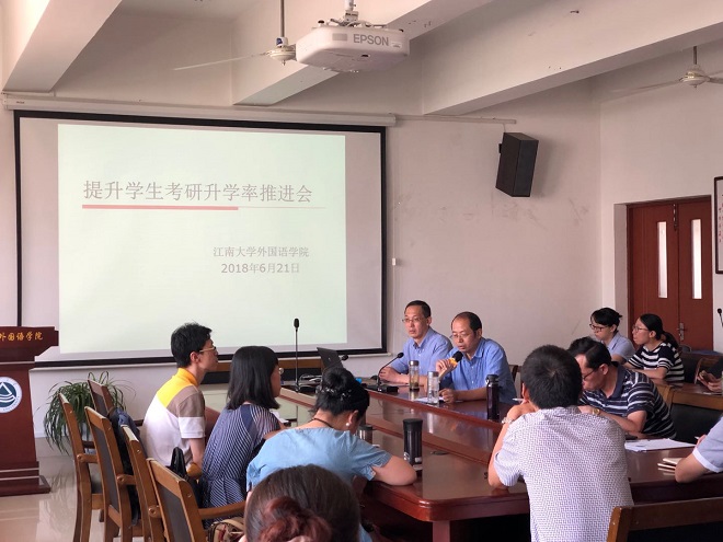学生考研跨学科比例高的特点;英语系主任孙志祥和日语系主任崔明姬分别在前期调研的基础上,提出了如何提升本专业学生考研率的措施与办法;方文开副院长表示学院将培养方案的改善、实验教学平台的更新等方面来保障提高考研升学率;学生工作组成员和班主任交流了如何加强学业指导,帮助学生尽早确立考研目标,解决考研过程中遇到困难。