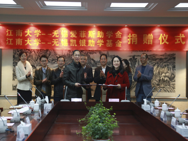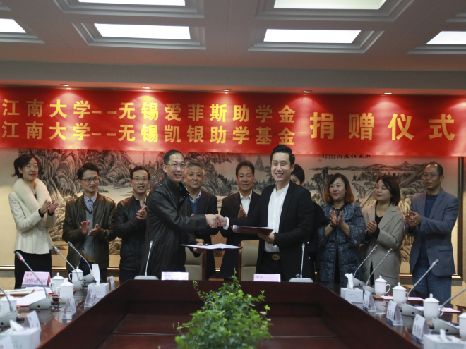 —无锡爱菲斯助学金和凯银助学基金捐赠仪式在行政楼B305举行,水果派