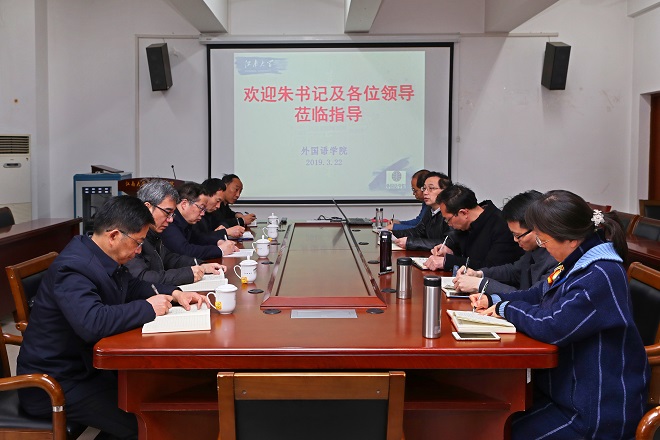的发展提出四点要求:一是要进一步提高认识和站位,要对标“双一流”建设需要,积极培育和建设与学校整体发展相适应的外语学科;二是要以学科建设为龙头,整合多方力量,协同推进一级学科硕士点的申报与建设工作;三是要以师资队伍建设为关键,加快高水平人才引培力度,提升学院整体师资队伍建设水平;四是要以高水平国际交流合作为抓手,鼓励师生主动参与高水平学术交流活动,支撑学院整体发展。