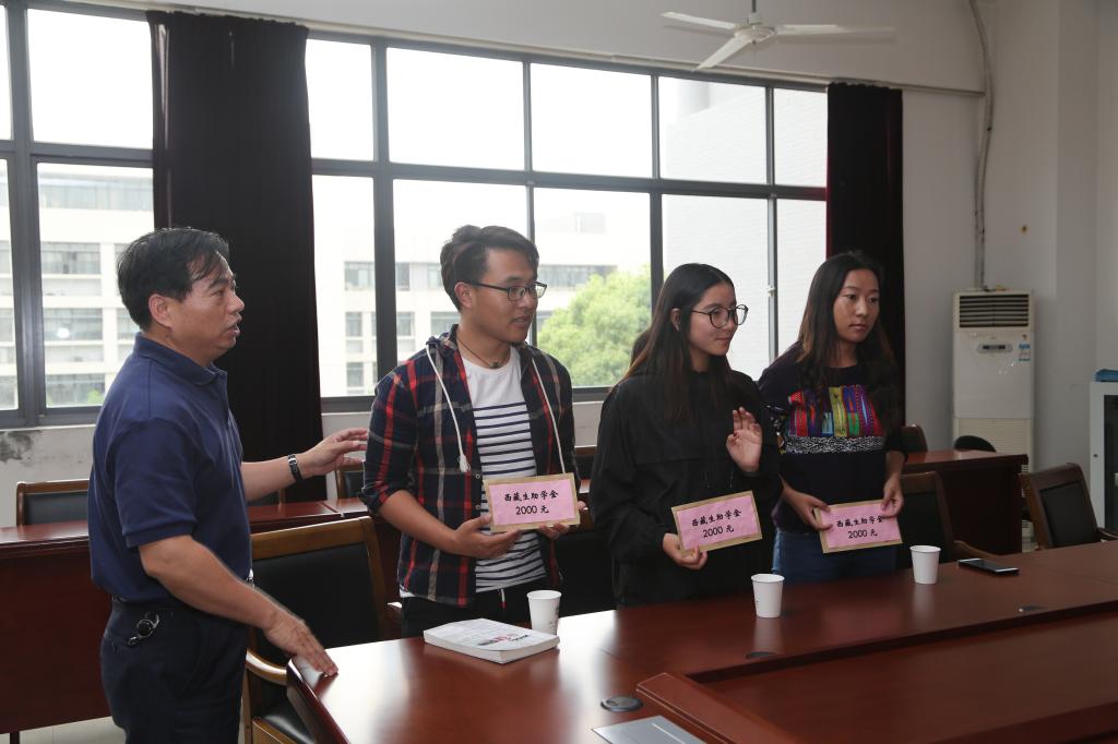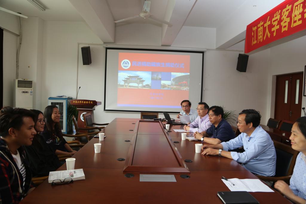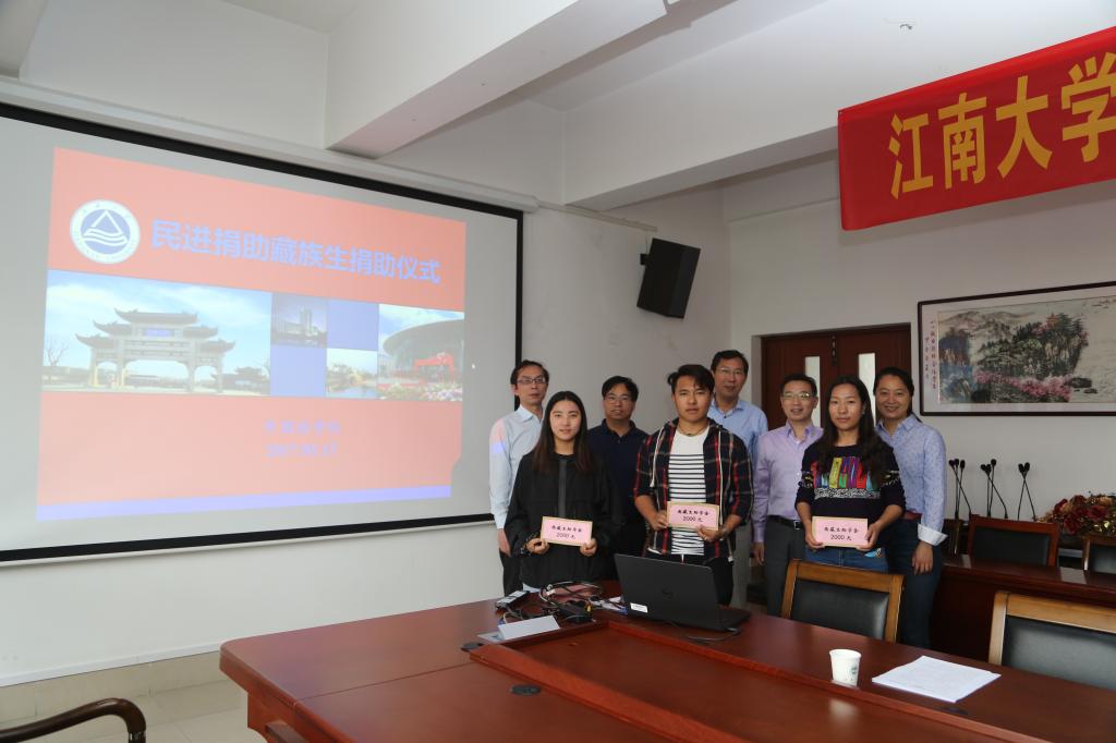 食品学院副院长杨瑞金手中接过了民进江大会员捐资提供的助学金共计6千元。作为民进江大社会公益活动的一项重要工作,此项助学行动先后在杨主委和新一届民进江大主委龚雁的领导下进行部署与实施,自2014年起历时四年,旨在于帮助三名少数民族学生顺利完成本科学业,既是让他们感受来自母校的关爱与温暖,也是鼓励他们在校努力学习,毕业后更好地服务于家乡的民族事业以及经济发展。捐赠仪式由水果派