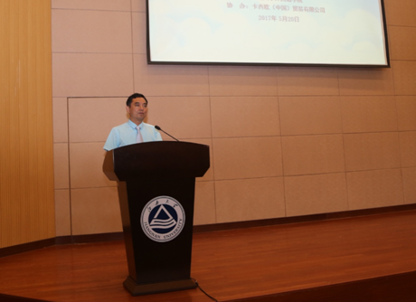 教务处魏取福处长代表学校领导致欢迎辞,游衣明副会长和卡西欧(中国)贸易有限公司电子教育营业部赵敏娜部长等分别致辞。