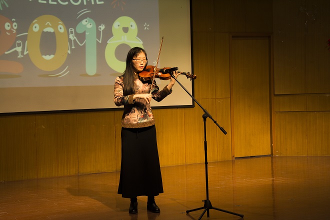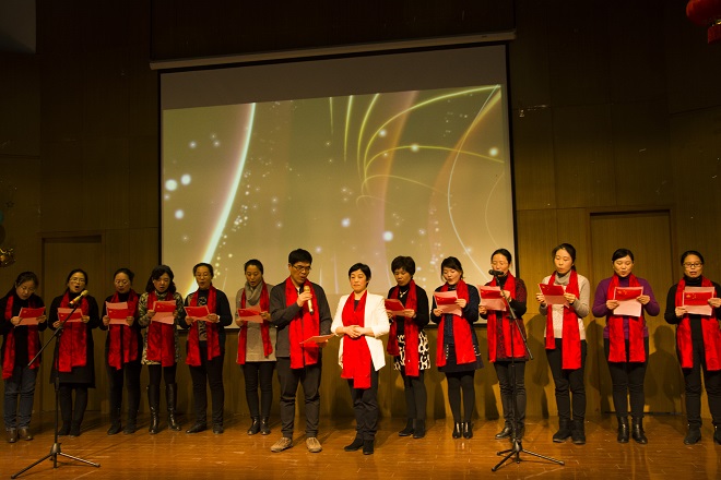 经过一个月的筹备,老师们利用业余时间,充分发挥各自的聪明才智,以组织课堂教学的认真态度,通过网络等多渠道的学习,利用学校人文专业的资源,研究了服装、道具、配乐等舞台效果。节目的上演便如同考试,也被视作“我们自己的春晚”,大家都分外投入。节目形式多样,舞蹈、朗诵、合唱,有西洋乐器演秦,也有传统快板的敲击。参与演员,有外籍老师,有师生同台,有即将退休的年长同志,也有刚入职首次亮相的青涩新人,有头发稀少的教授,也有身姿优美的丽人。每个人既有演出,也当观众,学院中层干部纷纷登台,台上台下热情互动,情谊交融,活动圆满成功。