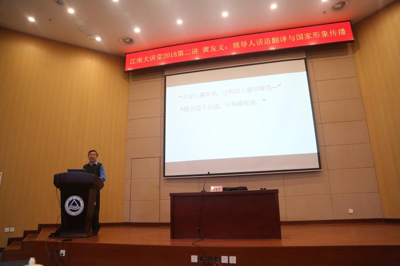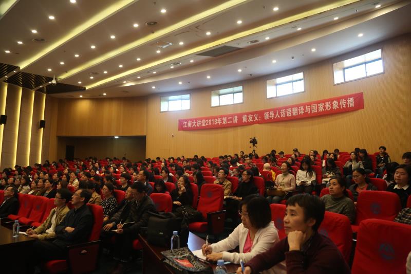 远东报告厅作了题为“领导人话语翻译与国家形象传播”的学术讲座。此次讲座既是校党委宣传部组织的2018年“江南大讲堂”的第二讲,也是水果派