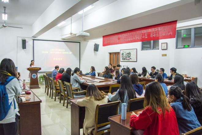 青年马克思主义者培养工程训练营暨外院团学菁英班(以下简称院“青马工程”)开班仪式于外院楼A349室举行。校团委组织部部长夏京璟,学院党委副书记副院长刘伯贤,关工委委员鲍国庆,分团委副书记张圆,辅导员黄颖,学生会主席团成员出席开班仪式,学院分团委书记杨艳主持了本次开班仪式。