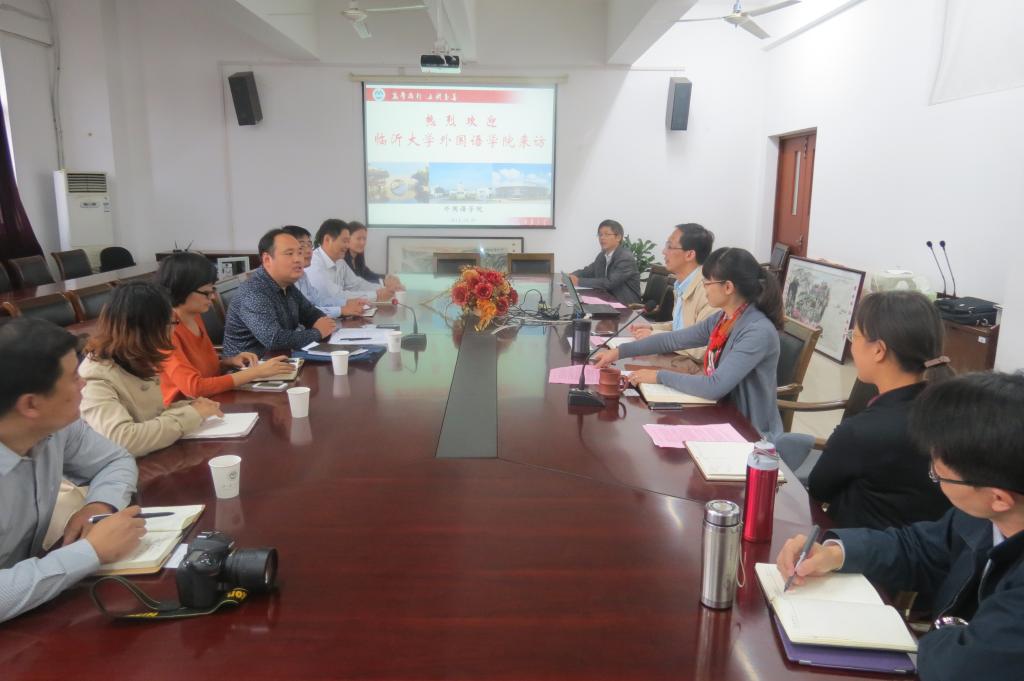 1030日,临沂大学水果派 彭洪君副书记、王晓军副院长一行前来水果派访问交流。水果派龚晓斌院长、李健雪副院长等院领导参加了交流座谈。龚晓斌院长向来访客人简要介绍了学院发展整体状况以及2014年教改新方案:以“听说、读写、翻译”三大模块进行课程设置,让学生根据自身的需求,选择相应的模块教学,提高相应的技能。座谈双方还就专业设置、教学实践环节、学科竞赛、学生管理团队建设等进行了相互交流。座谈结束后客人们到二教楼实地参观了水果派 大学英语自主学习中心。