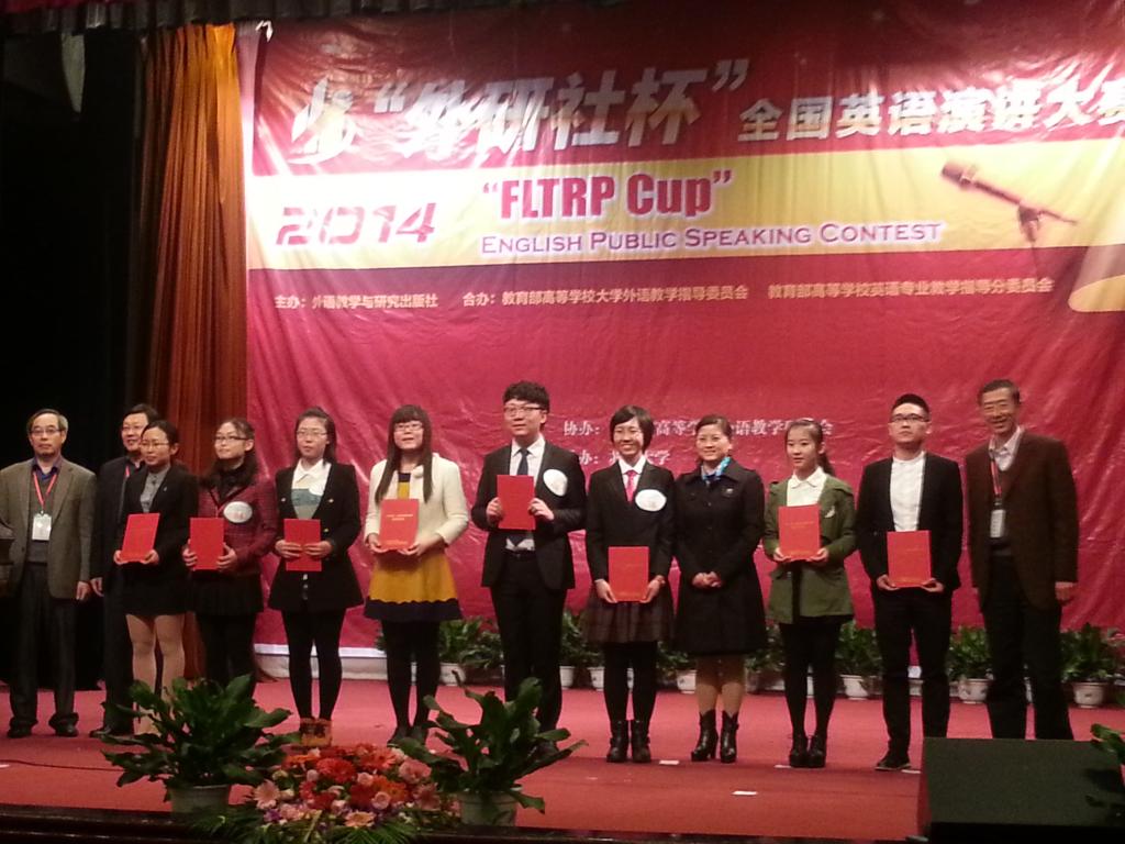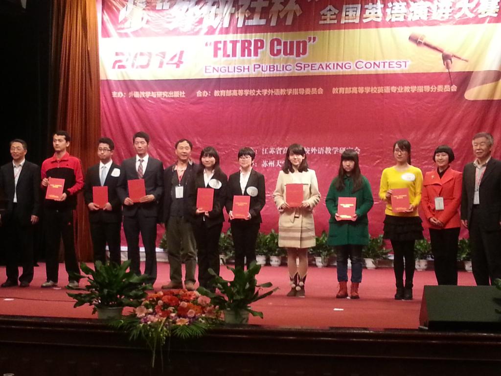 英语1105班何磊静同学和英语1201班孙培培同学荣获二等奖,英语1305班的窦君怡同学荣获三等奖。