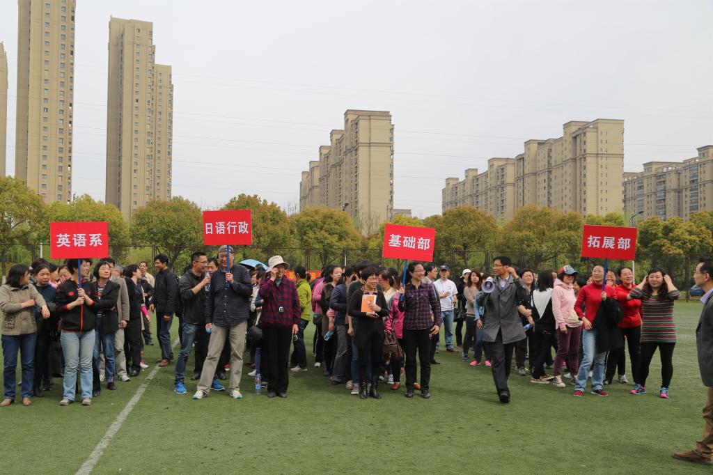 在学校体育中心东侧小足球场举行了第五届教职工运动会。运动会由学院分工会主席管纪龙主持,学院党委书记黄城芳做开幕式动员讲话,拓展部米家全老师和英语系朱义华老师分别代表裁判员和运动员做宣誓发言。运动会分为四个团体代表组,分别为英语系、基础部、拓展部、日语行政等合计120余人,4名学生志愿者参与运动会会务。