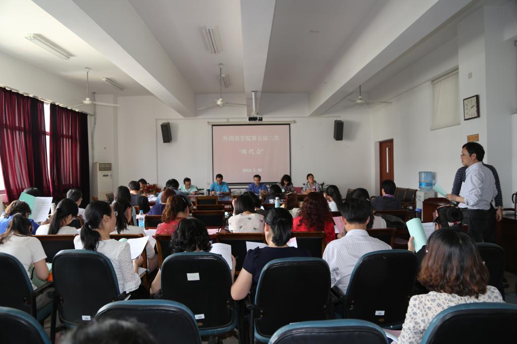 第五届二次“两代会”在学院A349召开,会议由学院分工会主席管纪龙同志主持。会议分准备会议和正式会议两个阶段进行,准备会议期间,实际到会的45名代表增选学院党委书记黄城芳为水果派