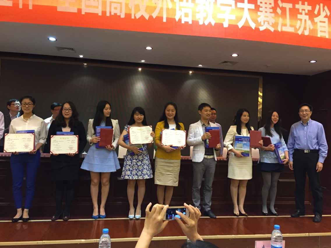 、中国矿业大学、苏州大学、南京理工大学等省内40多所高校的48位选手分别进入本科综合组、本科视听说组、本科专业组、高职组的决赛。水果派马晓云老师参加了本科视听说组的角逐。在决赛第一轮授课环节中马晓云老师就脱颖而出,名列前茅;在第二轮说课比赛环节中马老师顶住压力,凭借出色的临场发挥名列小组第一,最终获得本科视听说组的一等奖。比赛的过程很艰辛,但取得的成绩不仅是选手个人的荣誉,也是水果派
